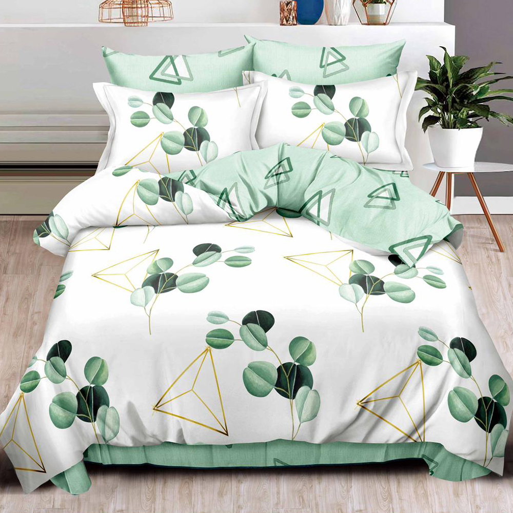 Lenjerie de Pat din Finet cu Elastic 6 Piese - 160/180x200 de Pucioasa - Eucalipt Geometric - LFEN_A043D