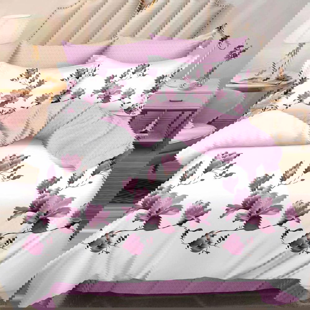 Lenjerie de Pat din Finet cu Elastic 6 Piese - 160/180x200 de Pucioasa - Magnolii Roz - LFEN_B090C