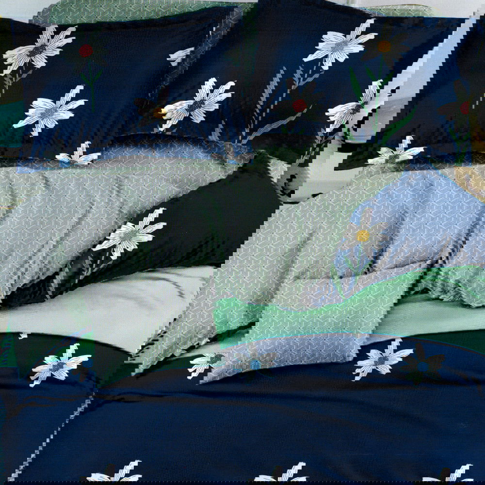 Lenjerie de Pat Finet 6 Piese - Verde cu Flori Albe - LFM_C022