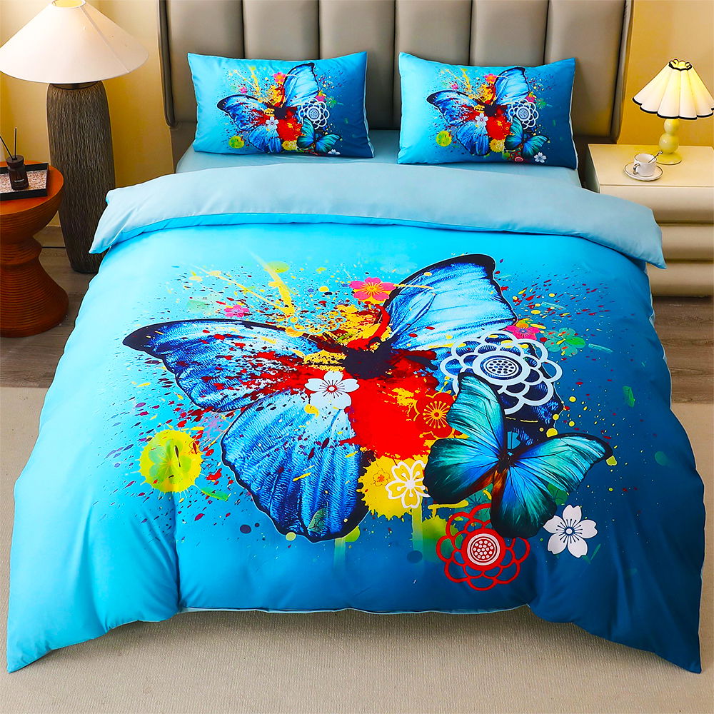 Lenjerie Fluturi Pictati din Finet 5D cu Cearceaf Elastic 160/180x200cm, 4 Piese - LFDEB_A104C
