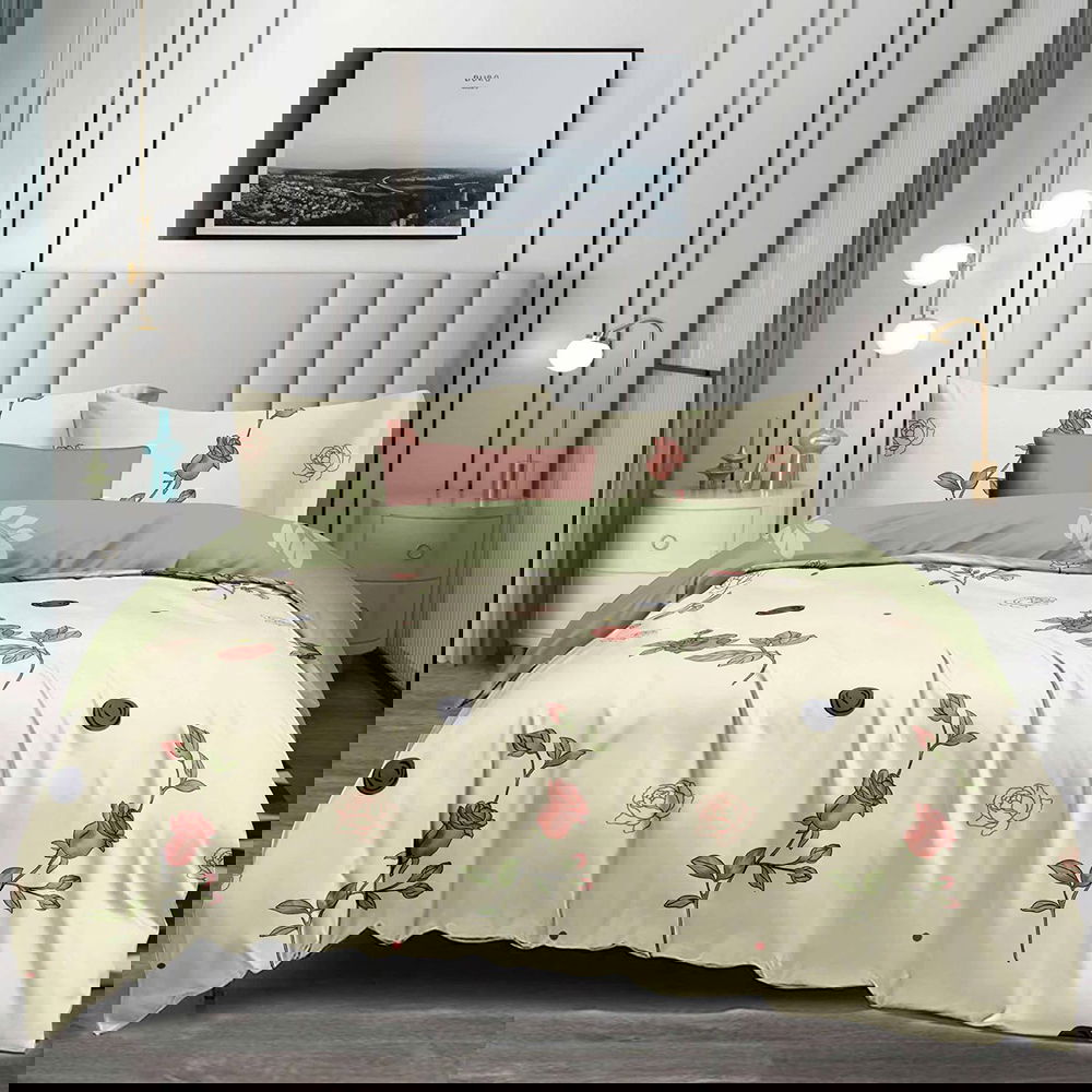 Lenjerie din Finet 90/120x200 - 4 Piese - Crem cu Trandafiri - LFSGS_E024B