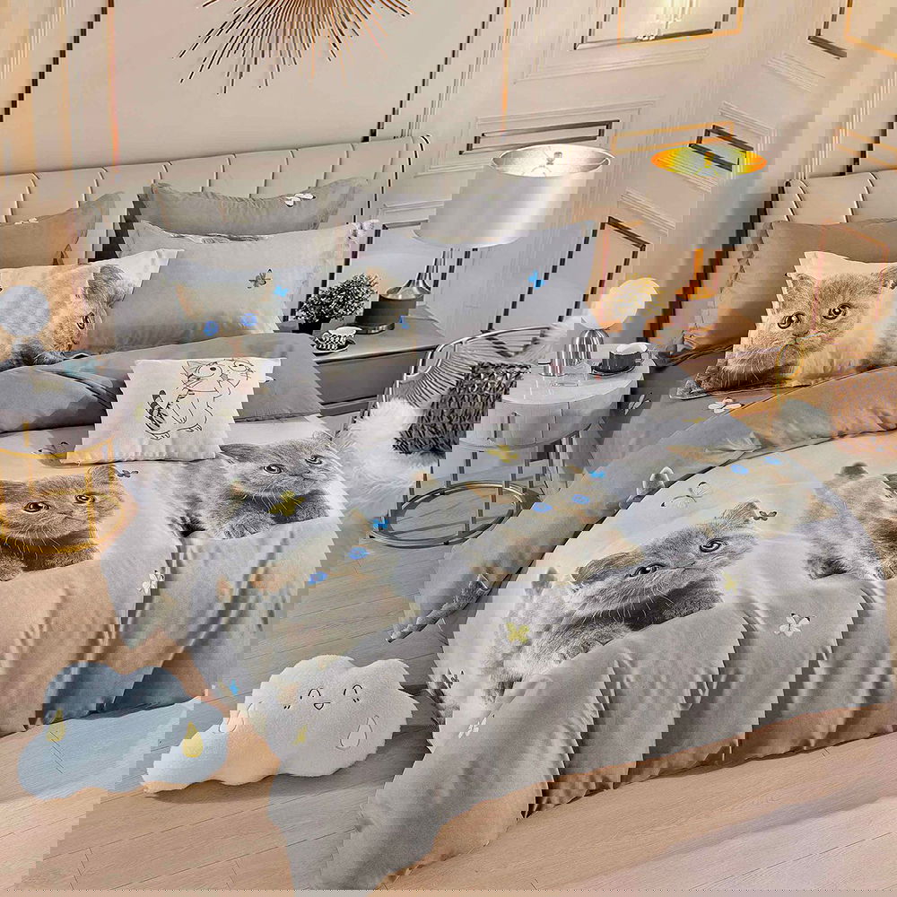 - CONȚINUTUL LENJERIEI: Acest set conține 4 piese: 1 cearceaf de pilotă (dimensiuni: 200x230 cm ±5cm), 1 cearceaf de pat (dimensiuni: 220x240 cm ±5cm) și 2 fețe de pernă (50x70 cm ±5cm).