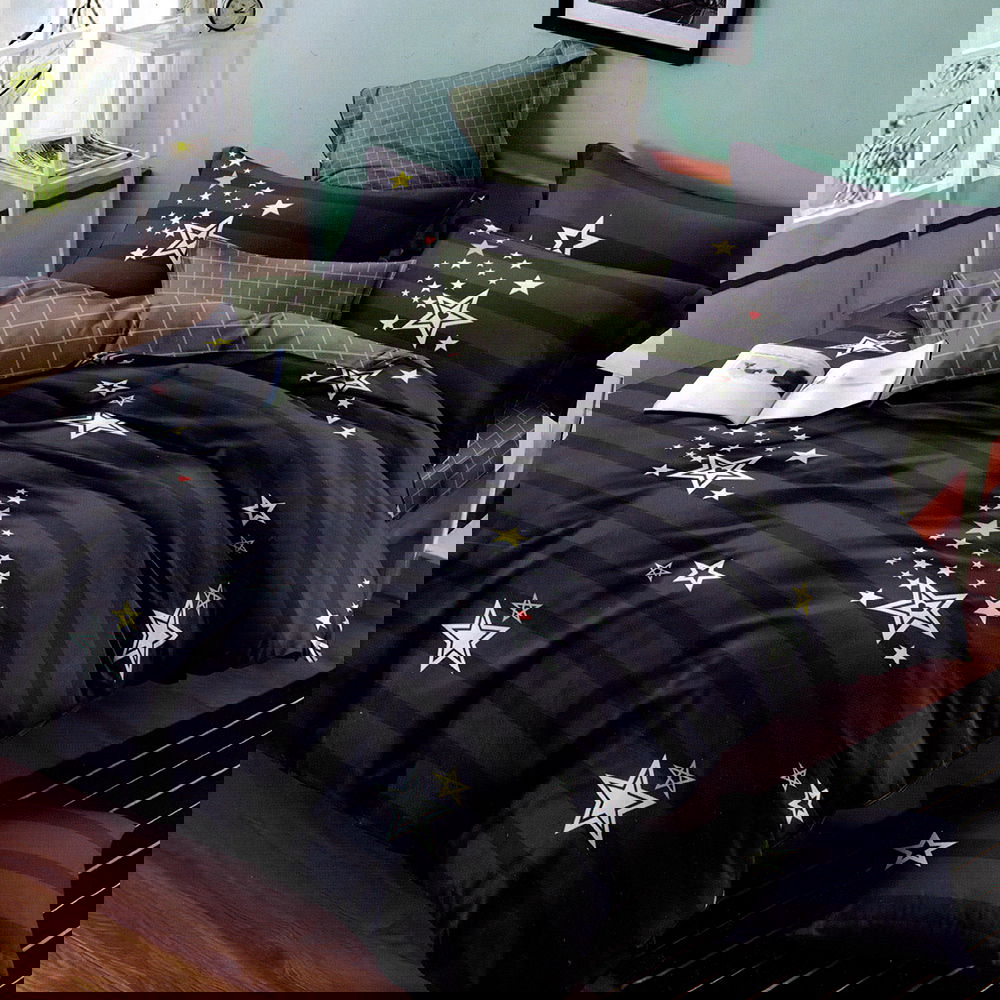 Lenjerie de pat 2 persoane (4 piese) confecționată din bumbac satinat de calitate superioară, foarte plăcut la atingere. Datorită amestecului optim de bumbac finet subțire și satin, această lenjerie asigură confort sporit prin textura sa moale și fină. Aspectul satinat al acestei lenjerii oferă eleganță și rafinament dormitorului. Cele 4 piese cu imprimeu modern sunt croite pentru a se potrivi patului tău matrimonial!