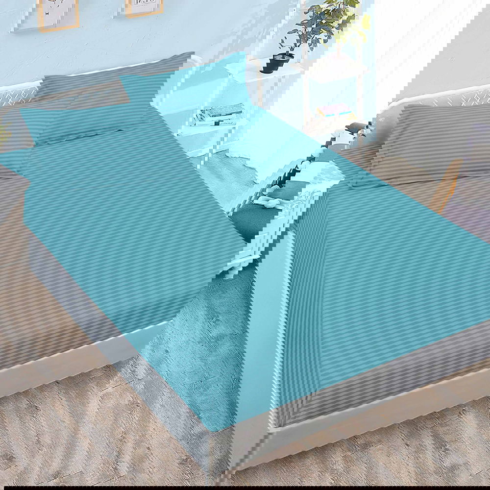 Lenjerie DUO Bumbac Satinat - Valuri Albastre - LBD1356