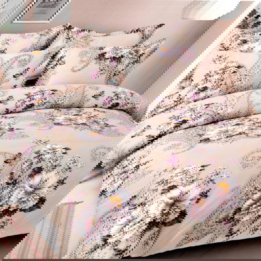 Lenjerie Finet 6 Piese - Bej cu Flori - LFS01021