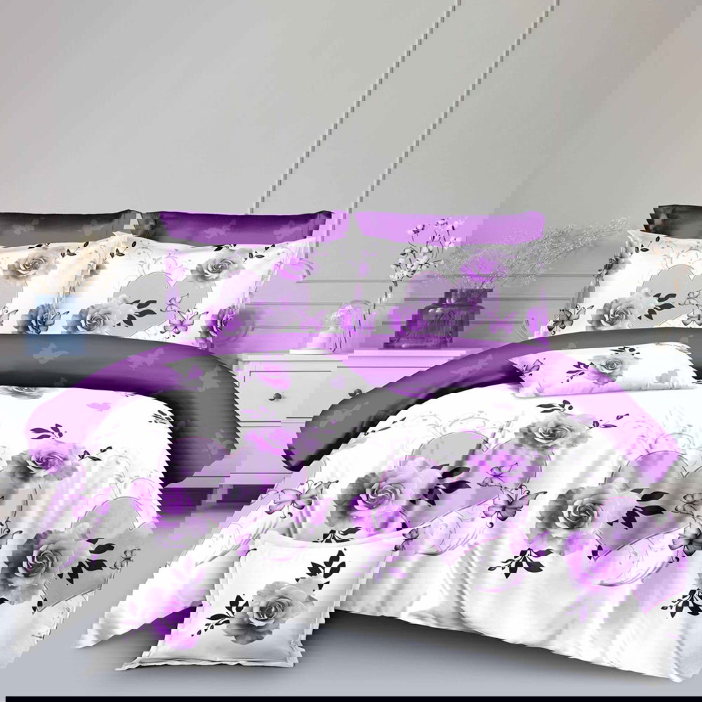 Lenjerie Finet Gros 8 Piese - Trandafiri si Fluturi Mov - LF8S_D051