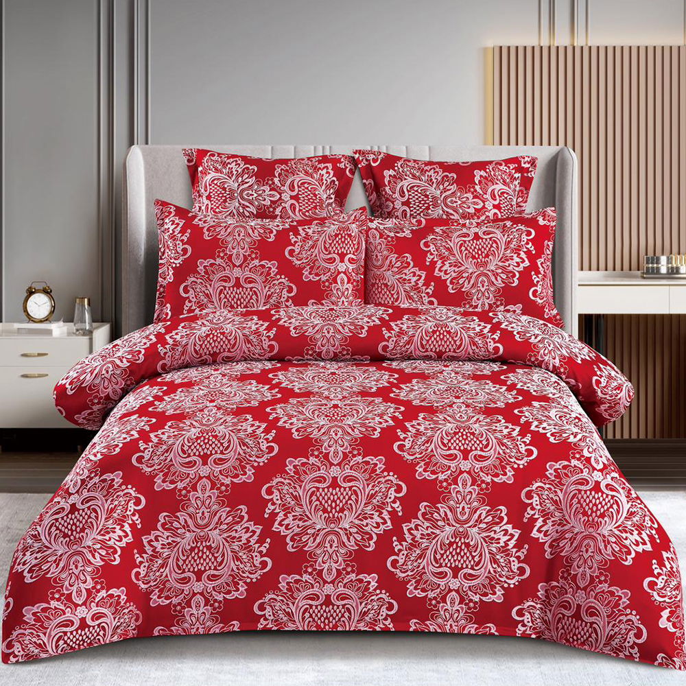 Lenjerie Tip Jacquard Finetat 6 Piese cu Elastic - Rosu cu Imprimeu Baroc - LJN_B161B