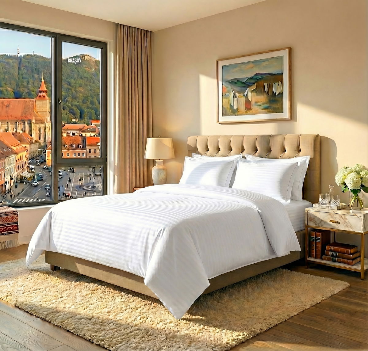 Lenjerie de Pat Bumbac 100%, Damasc Alb, Fabricată în Atelierul Harnicutei®, Țesătură Fină pentru Confortul tău de Acasa, Set 4 Piese pentru Pat Dublu (140x200, 160x200)