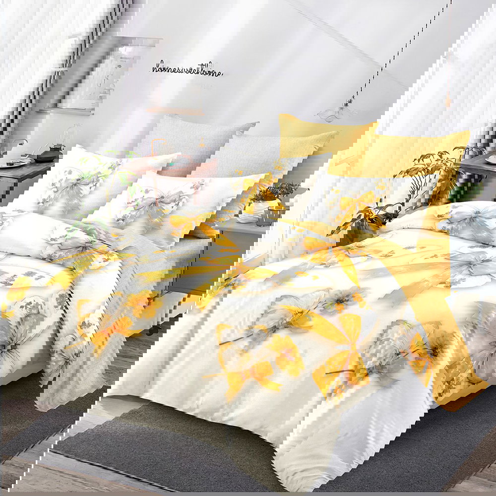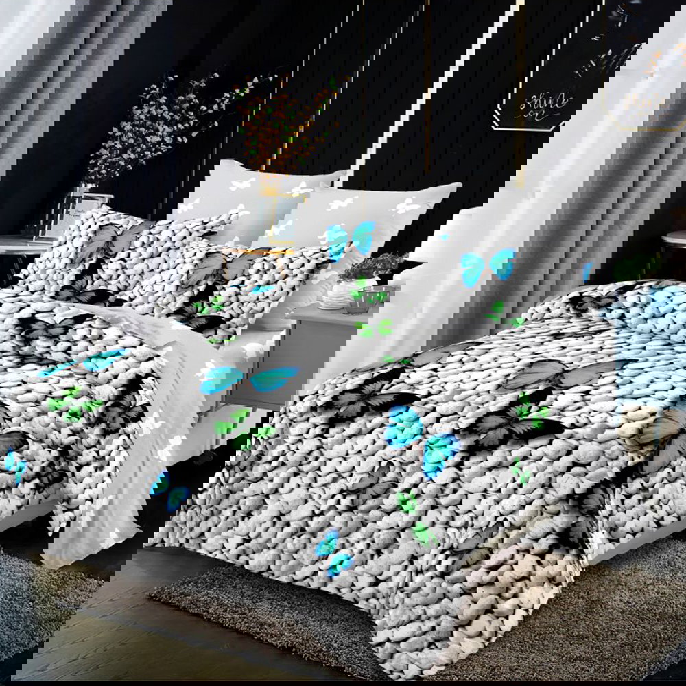 Lenjerie de Pat din Finet cu Elastic 6 Piese - 160/180x200 cm - Cadoul Fluturilor - LFEM_A021D