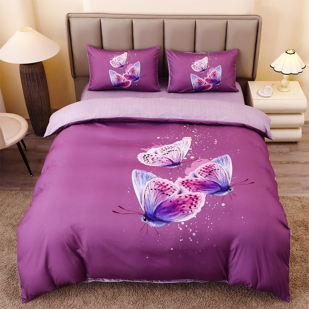 Lenjerie Fluturi Pictati din Finet 5D cu Cearceaf Elastic 160/180x200cm, 4 Piese - LFDEB_A104C