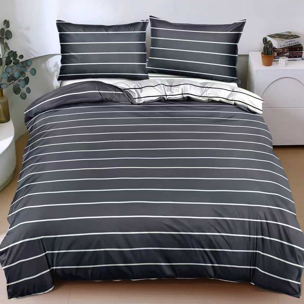 Lenjerie Bumbac Satinat 4 Piese - Dictando cu Linii Albe - LBDP_G075D