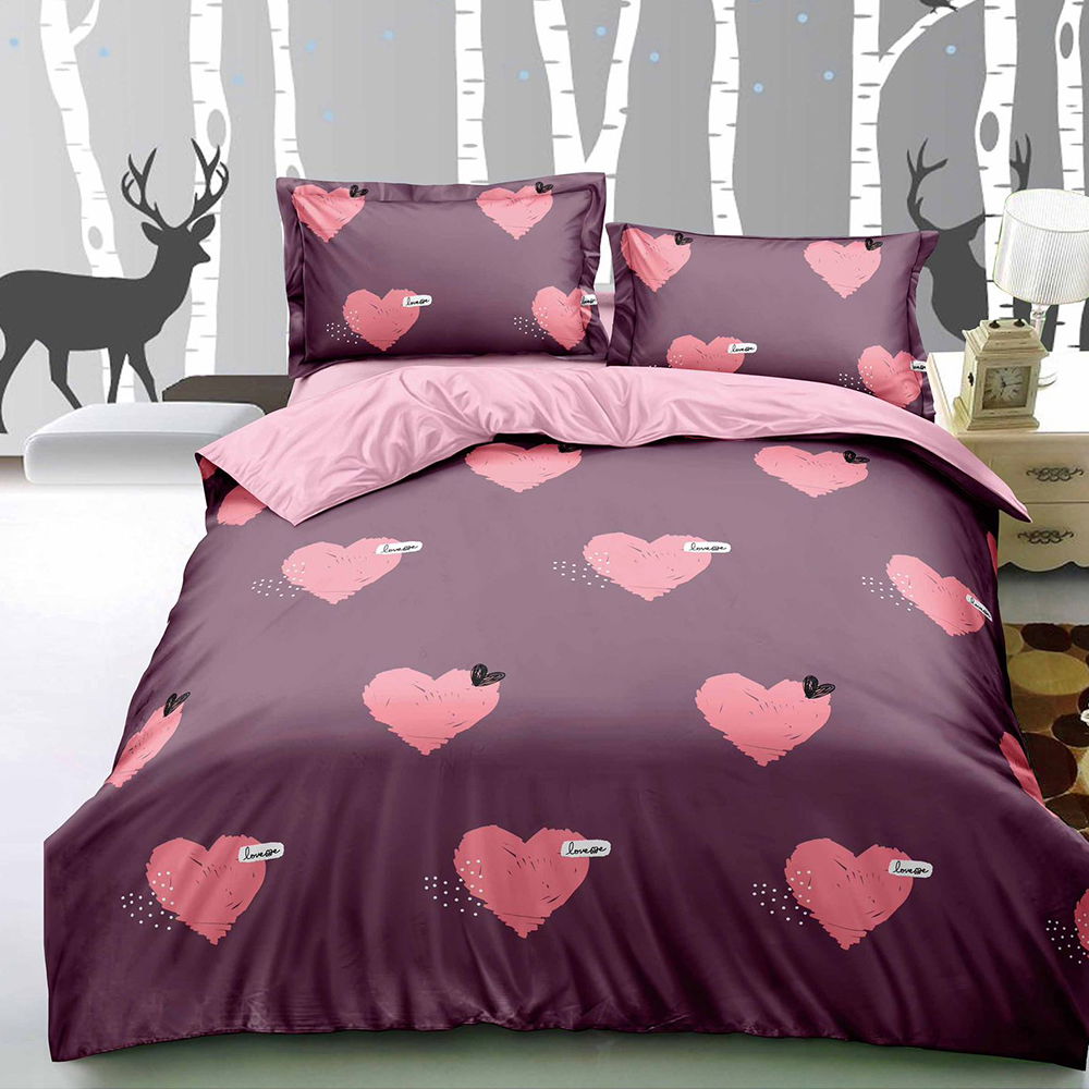 Lenjerie Bumbac Satinat cu Elastic 4 Piese - Inimioare Roz - LBDEM_G151B