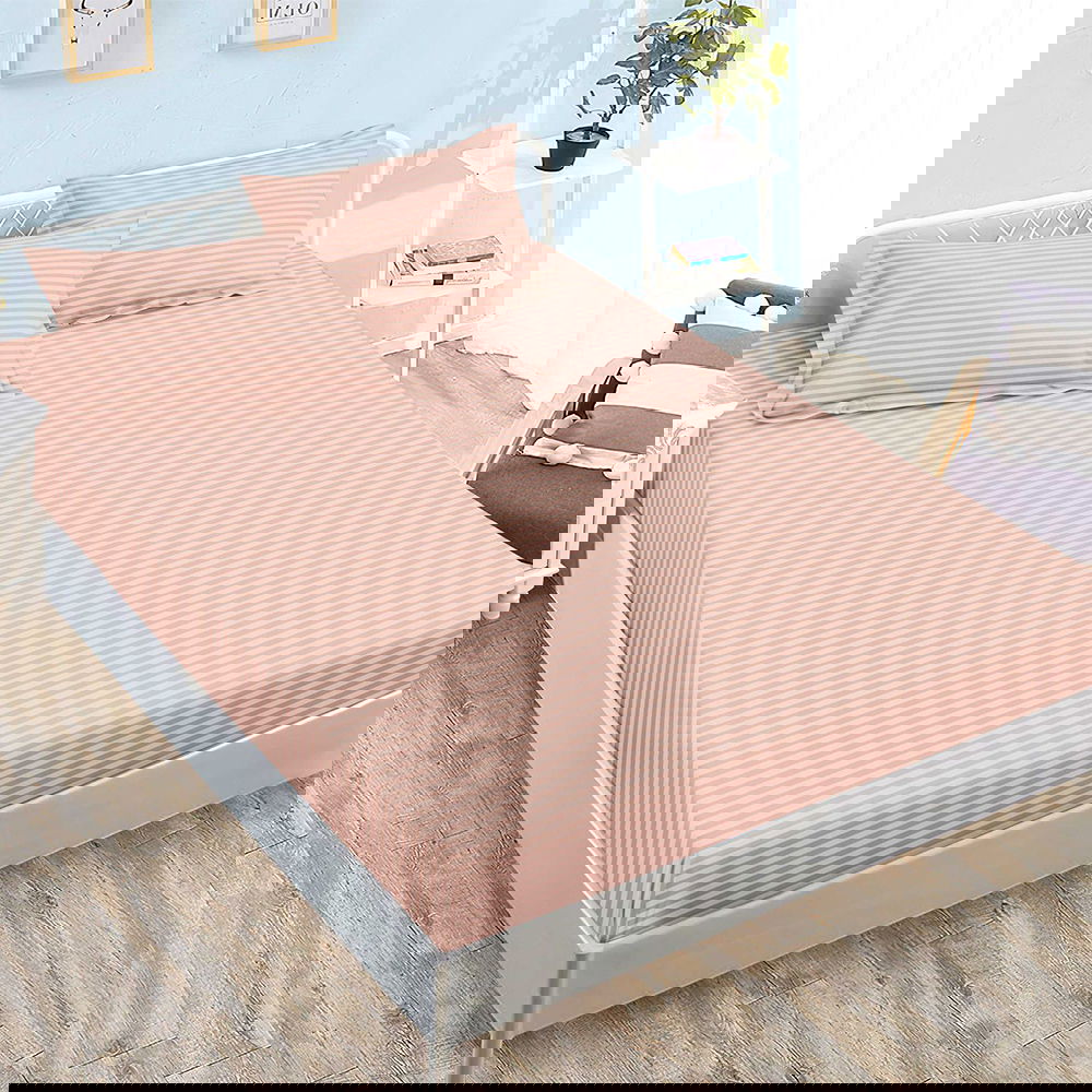 Cearceaf din Damasc Premium cu Elastic - 160/180x200 + 2 Fete Perna - Corai Prafuit - CED_K049B