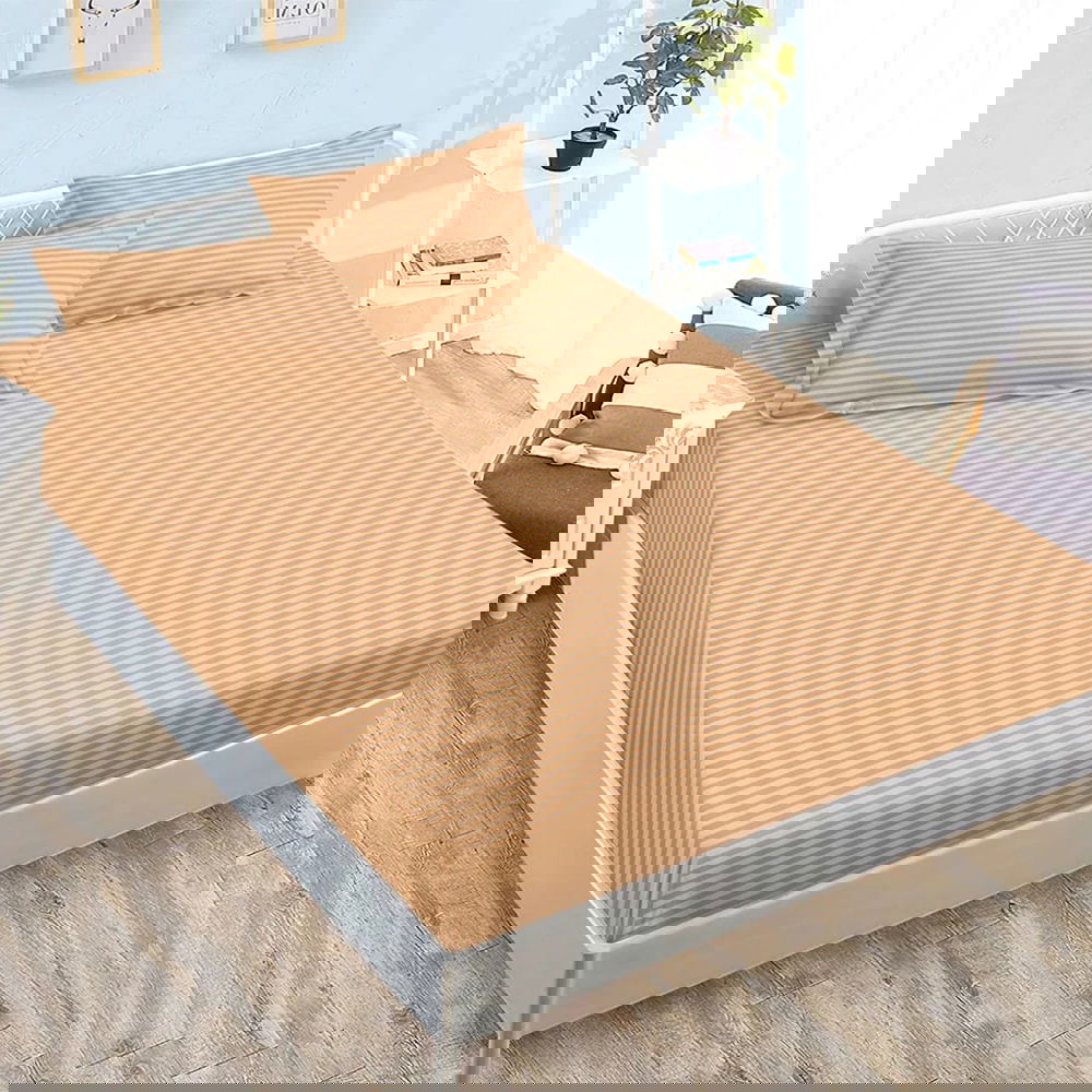 Cearceaf din Damasc Premium cu Elastic - 160/180x200 + 2 Fete Perna - Bej-Crem - CED_K065