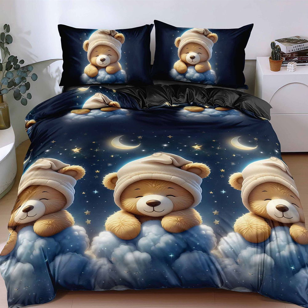Lenjerie Bumbac Satinat 4 Piese - Neagra cu Stelute Albe - LBDP_G127
