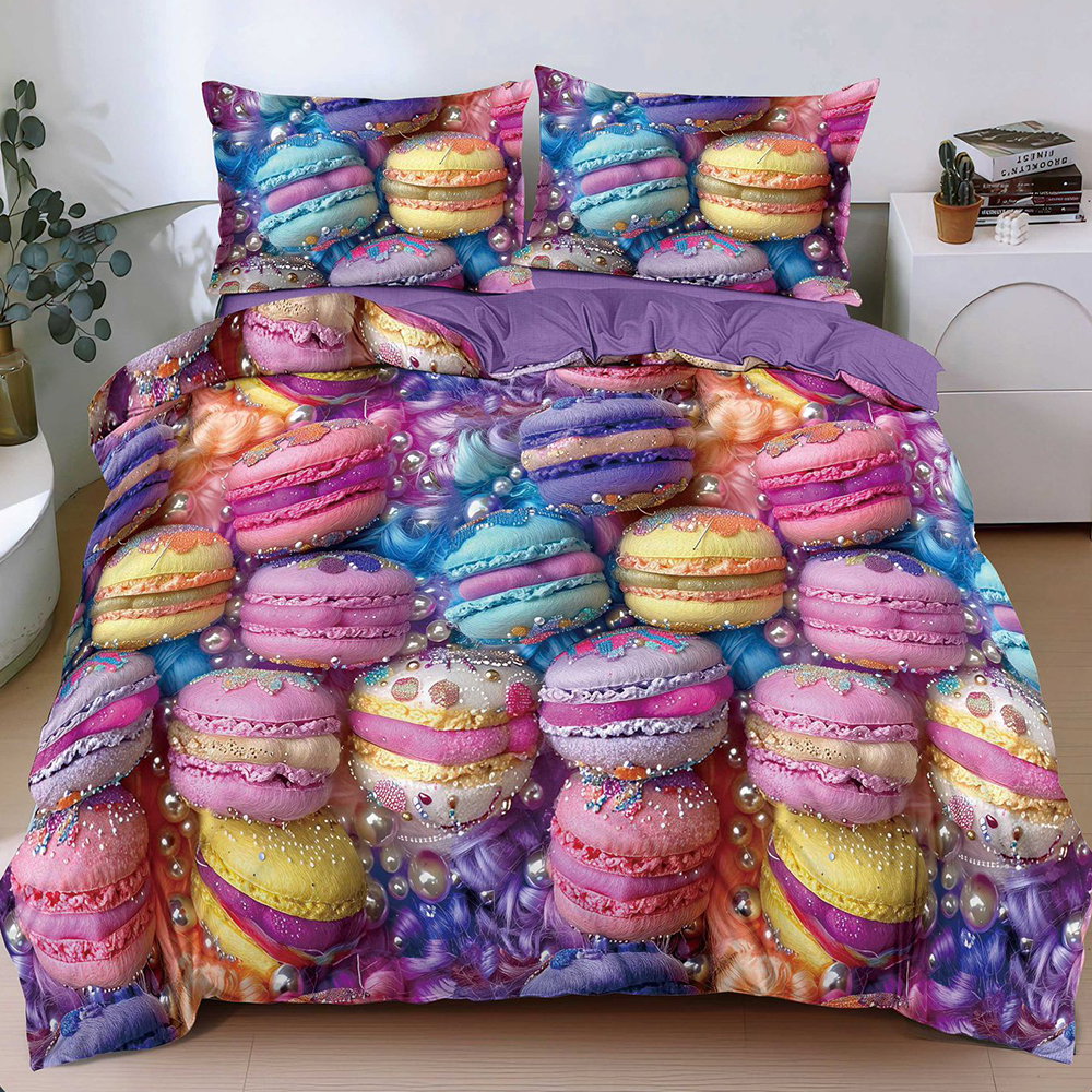 Lenjerie Bumbac Satinat 4 Piese - Macarons Mov - LBDP_G121B