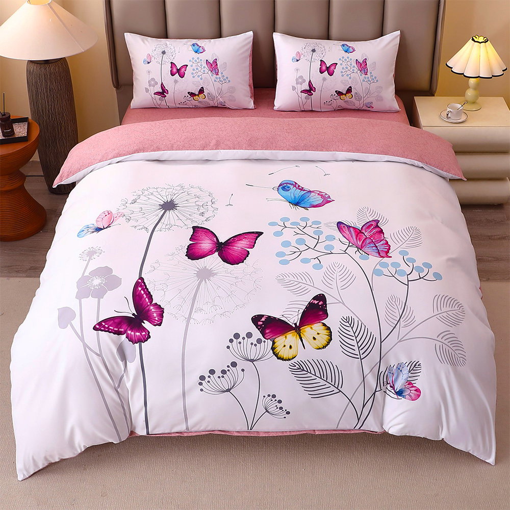 Lenjerie Floare de Camp cu Fluturi din Finet 5D cu Cearceaf Elastic 160/180x200cm, 4 Piese - LFDEB_A126C