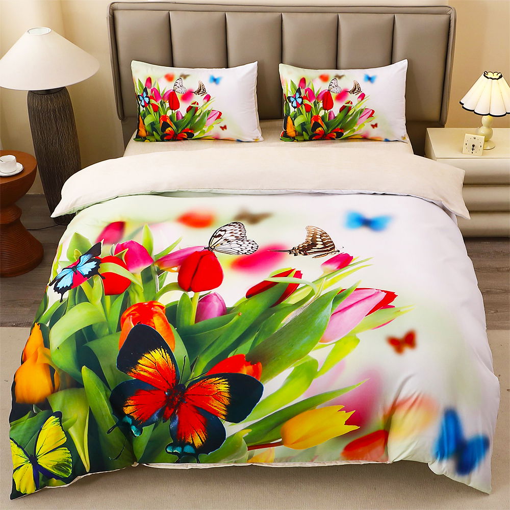 Lenjerie Zborul Fluturilor Roz din Finet 5D cu Cearceaf Elastic 160/180x200cm, 4 Piese - LFDEB_A111C