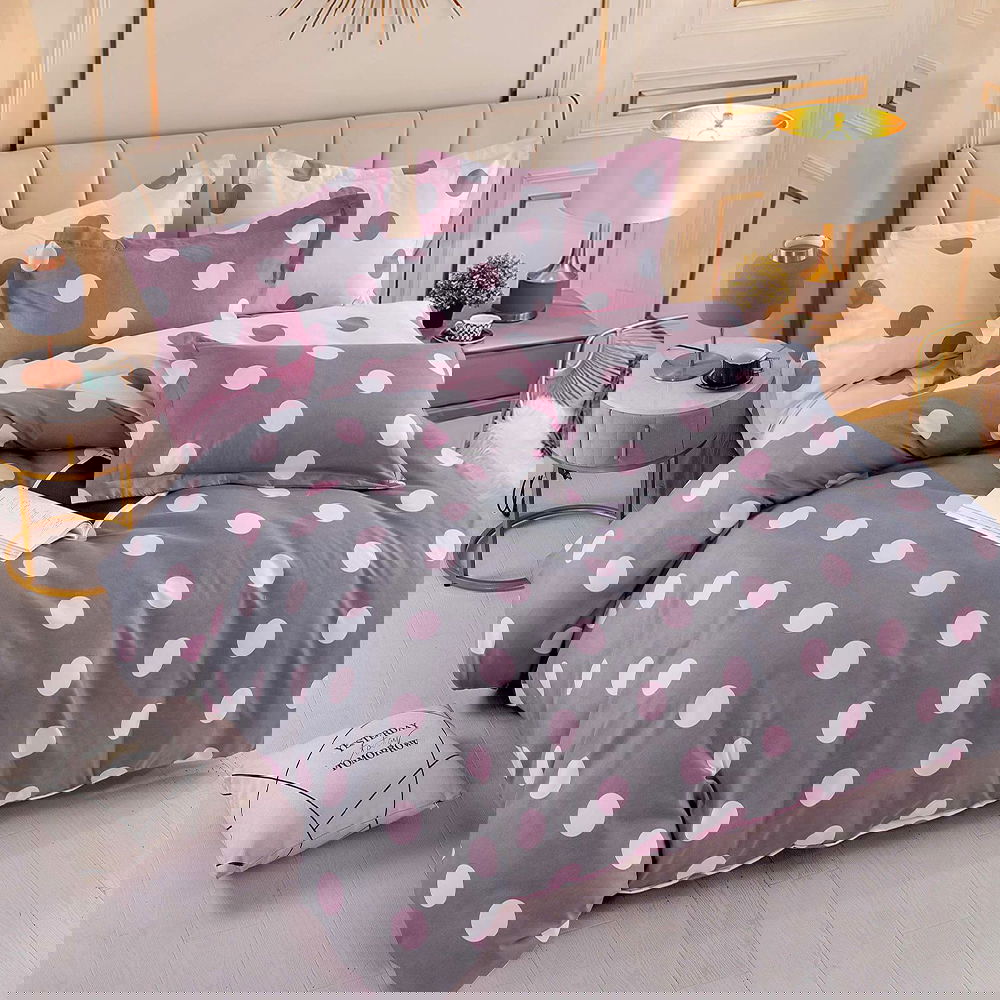Lenjerie de Pat Damasc Premium 6 Piese cu Cearceaf Elastic - Roz Deschis - LDES_H033