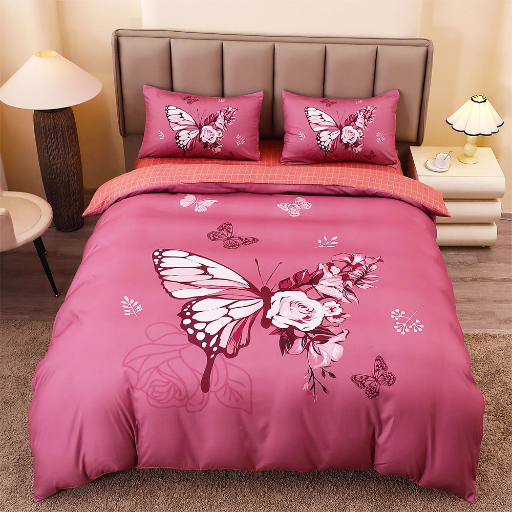 Lenjerie Roz Pudra cu Fluturi din Finet 5D cu Cearceaf Elastic 160/180x200cm, 4 Piese - LFDEB_A102C