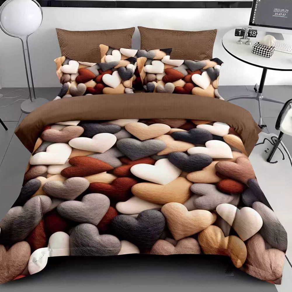 Lenjerie 6 Piese Bumbac Finet 3D/5D - Inimioare Multicolore - LFDN_B062B