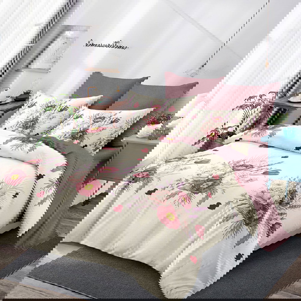 Lenjerie de Pat din Finet cu Elastic 6 Piese - 160/180x200 cm - Buchete Bujori - LFEM_A027C
