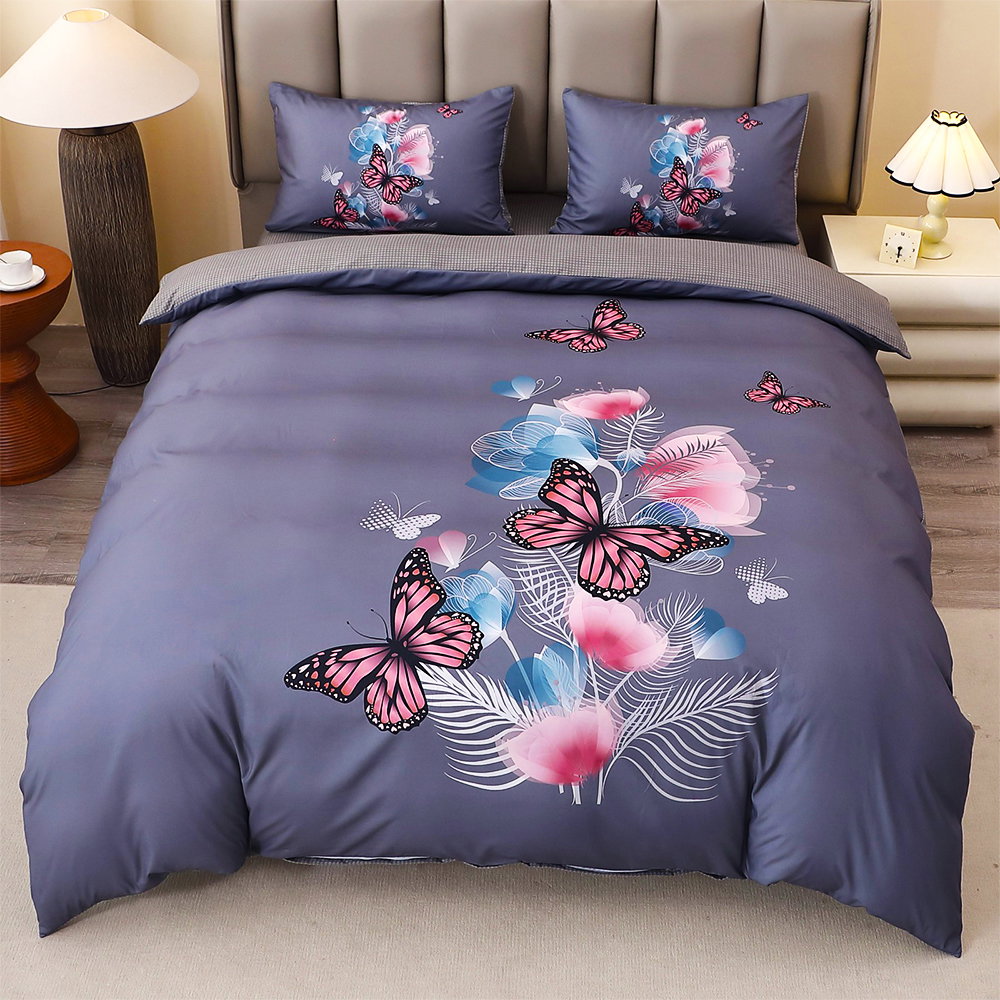 Lenjerie Fluturi pe Margareta din Finet 5D cu Cearceaf Elastic 160/180x200cm, 4 Piese - LFDEB_A120C