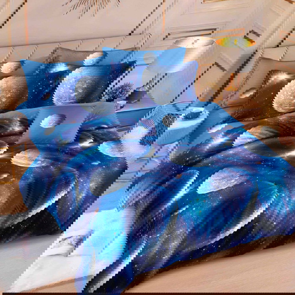 Lenjerie Finet 6 Piese de Pucioasa - Albastru Planete si Galaxii - LFN_C019B