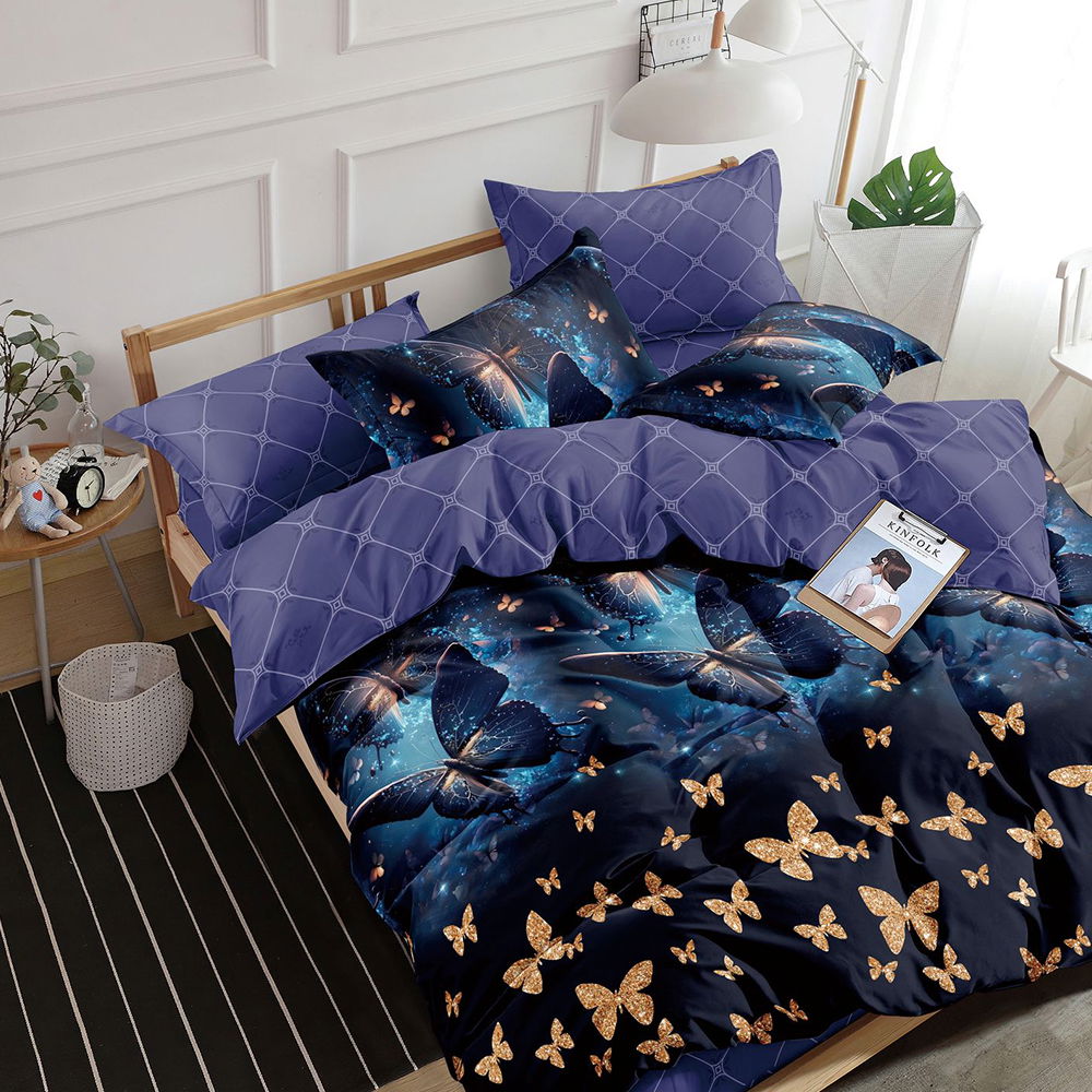 Lenjerie de Pat din Finet cu Elastic 6 Piese - 160/180x200 cm - Model Degrade cu Fluturi - LFEM_C163