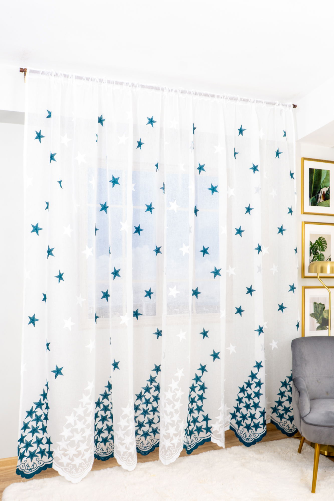 Perdea din In cu Stelute Turcoaz Verde Forest 300x240cm cu Rejansa - PERD0147_300x240_ATL_EMG