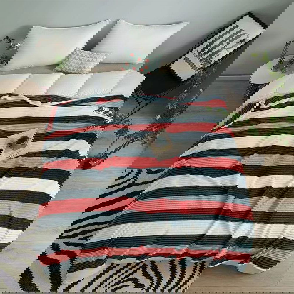 - CONȚINUTUL PACHETULUI: Pătura are dimensiuni generoase, fiind croită pe dimensiunile unui pat matrimonial. Are dimensiuni de 200x230 cm (+/- 10 cm).