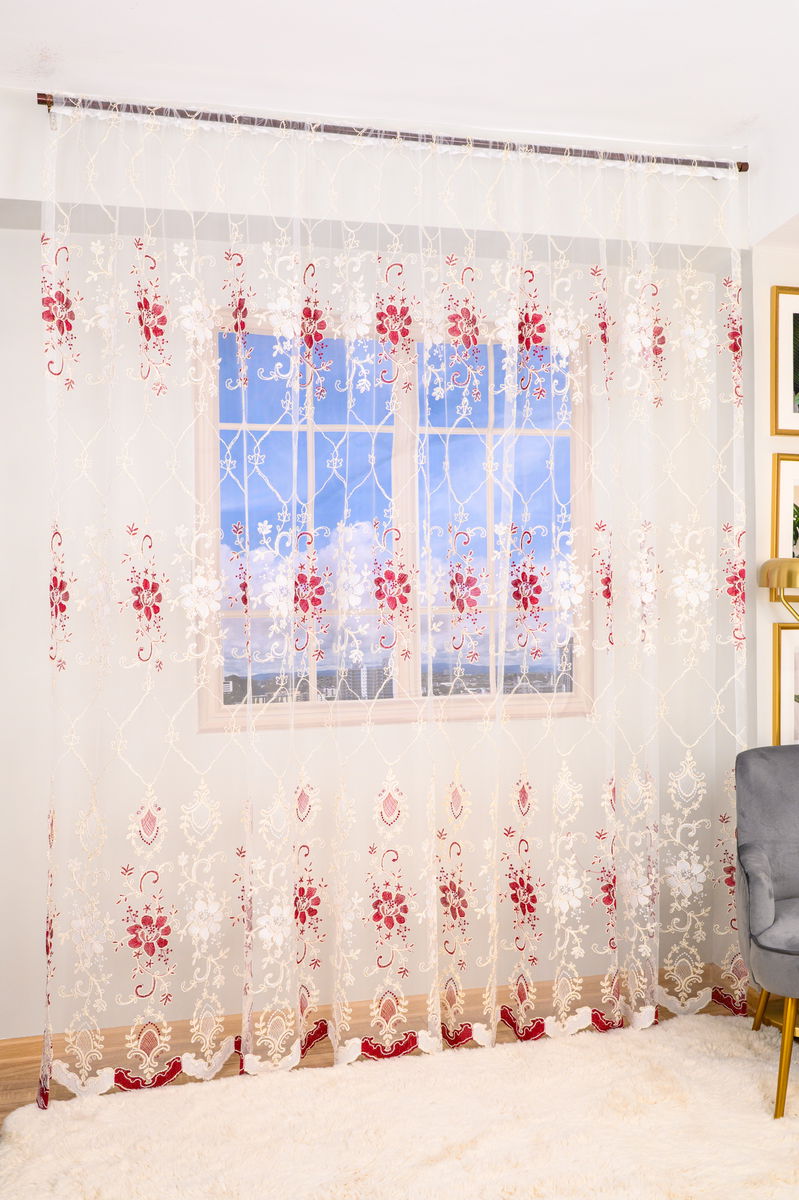 Perdea din In Campie cu Flori Visiniu cu Alb - PERD010C_PLC