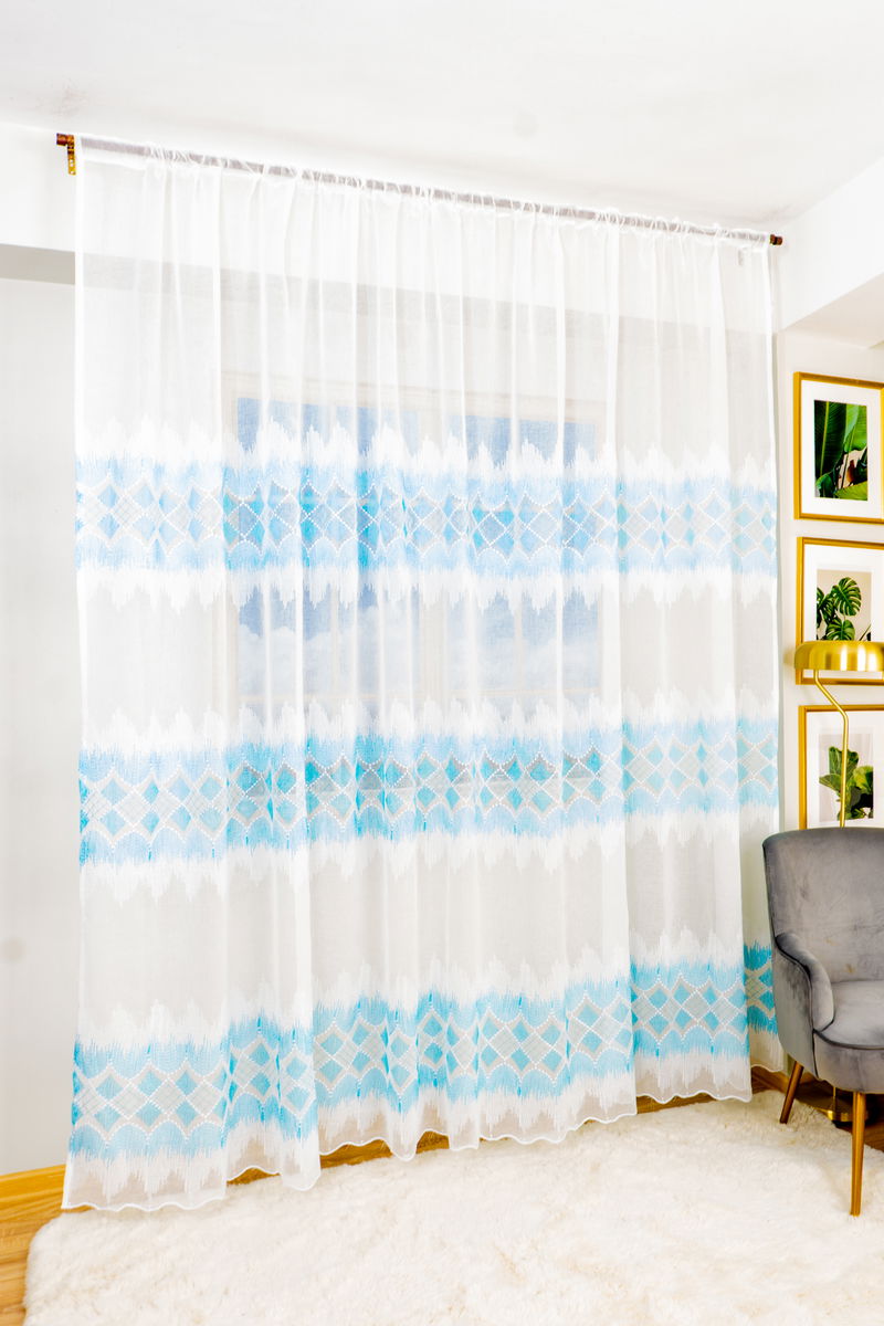 Perdea din In Echilibru Turcoaz Blue Deschis cu Alb - PERD072C_PLC