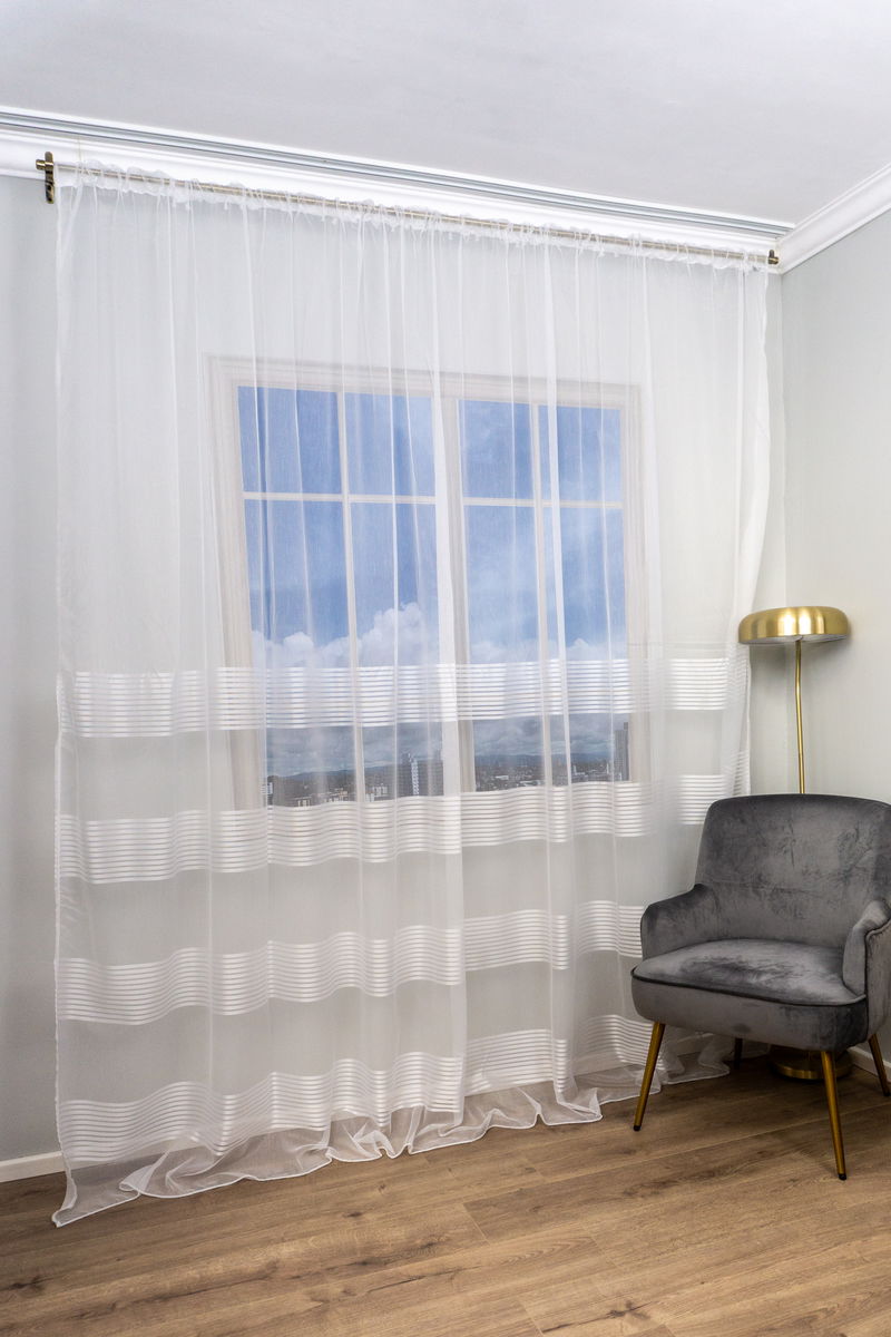 Perdea confecționată din tull elegant, cu finisaje fine, care vor da un aer elegant locuinței tale. Dincolo de aspectul rafinat, țesătura fină a acestei perdele permite luminii naturale să intre mai ușor în încăpere, oferind un efect deosebit casei tale.
