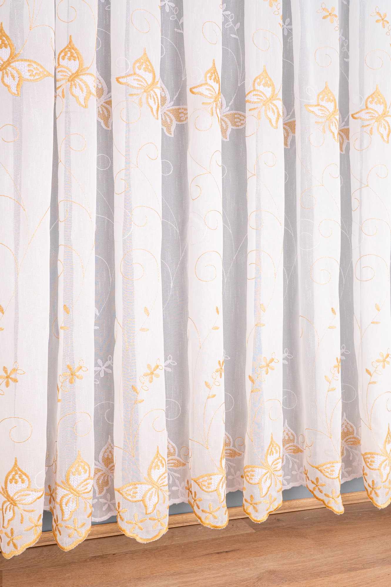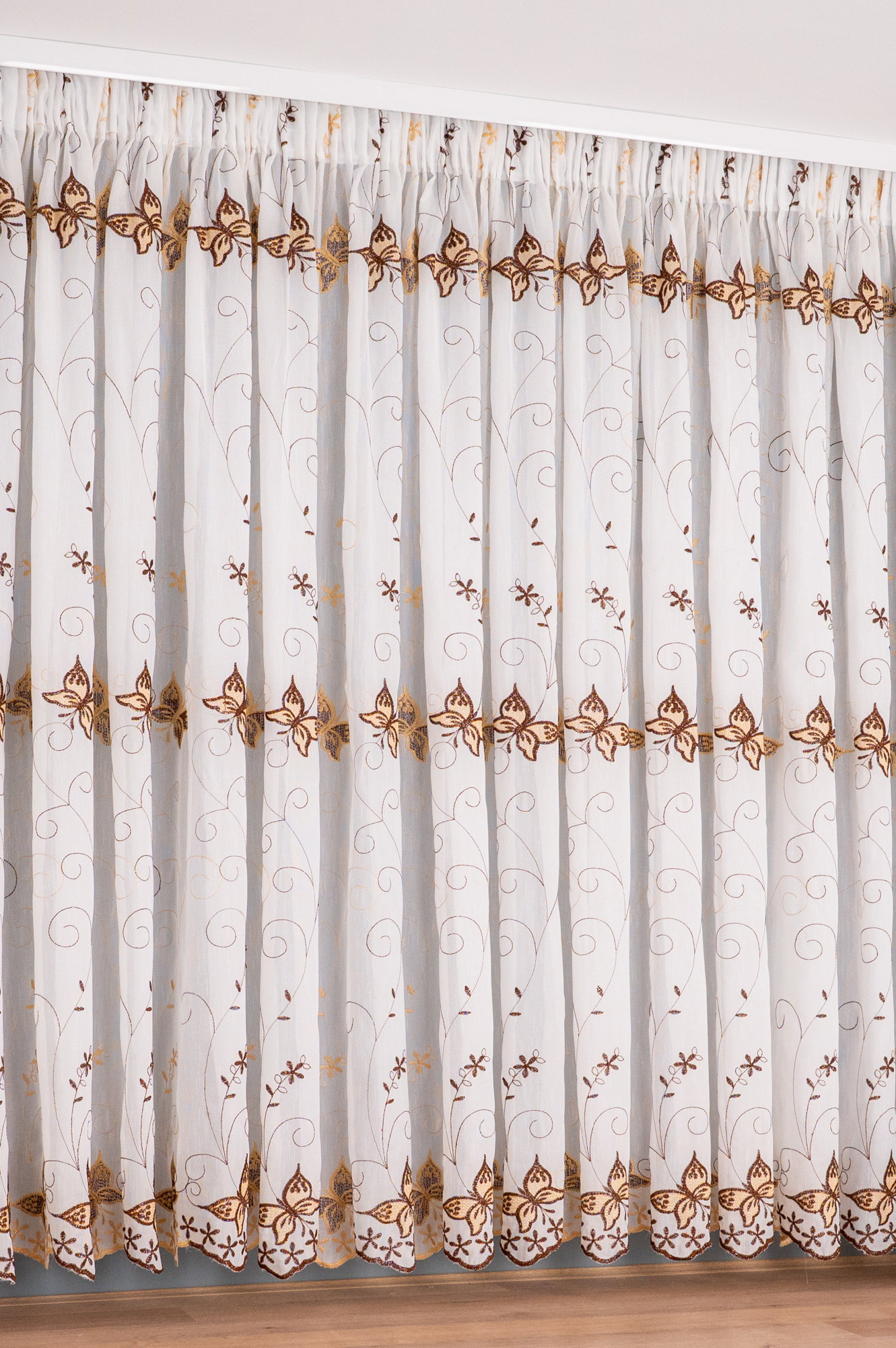 Perdea de Bucatarie Zborul Fluturilor Auriu cu Alb - PERDB008B_PLC