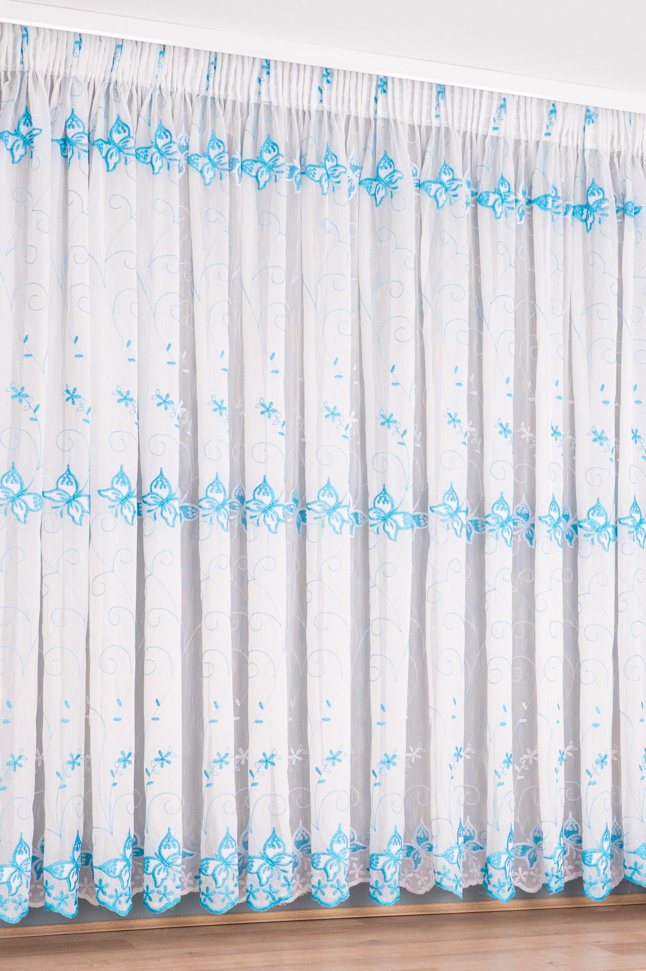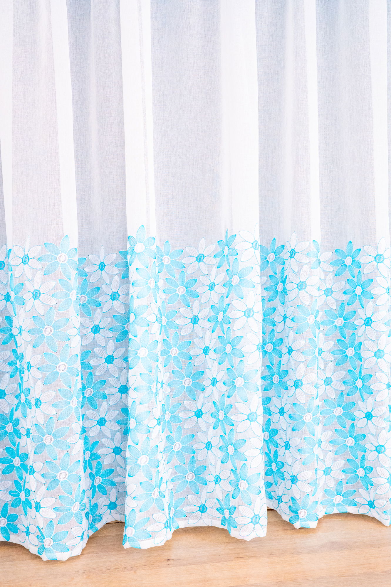 Perdea de Bucatarie Floare de Colț Turcoaz cu Alb - PERDB003B_PLC