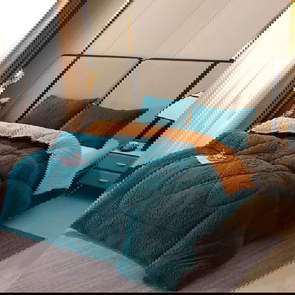 Pilotă Groasă de 200x230 cm și 2 fețe de pernă 50x70, confecționate din material pufos și călduros tip cocolino. Pilota este umplută cu vatelină (350g/mp), iar fața este făcută din microfibră flaușată tip cocolino cu blaniță pe interior. Este o pilotă extrem de călduroasă și groasă, ideală pentru sezonul rece. Pilota este umplută cu vatelină, iar materialul exterior este făcut din microfibră fină, super catifelată. Se poate spăla la maximum 40° Celsius. Pentru rezistență în timp, nu recomandăm folosirea înălbitorilor chimici.