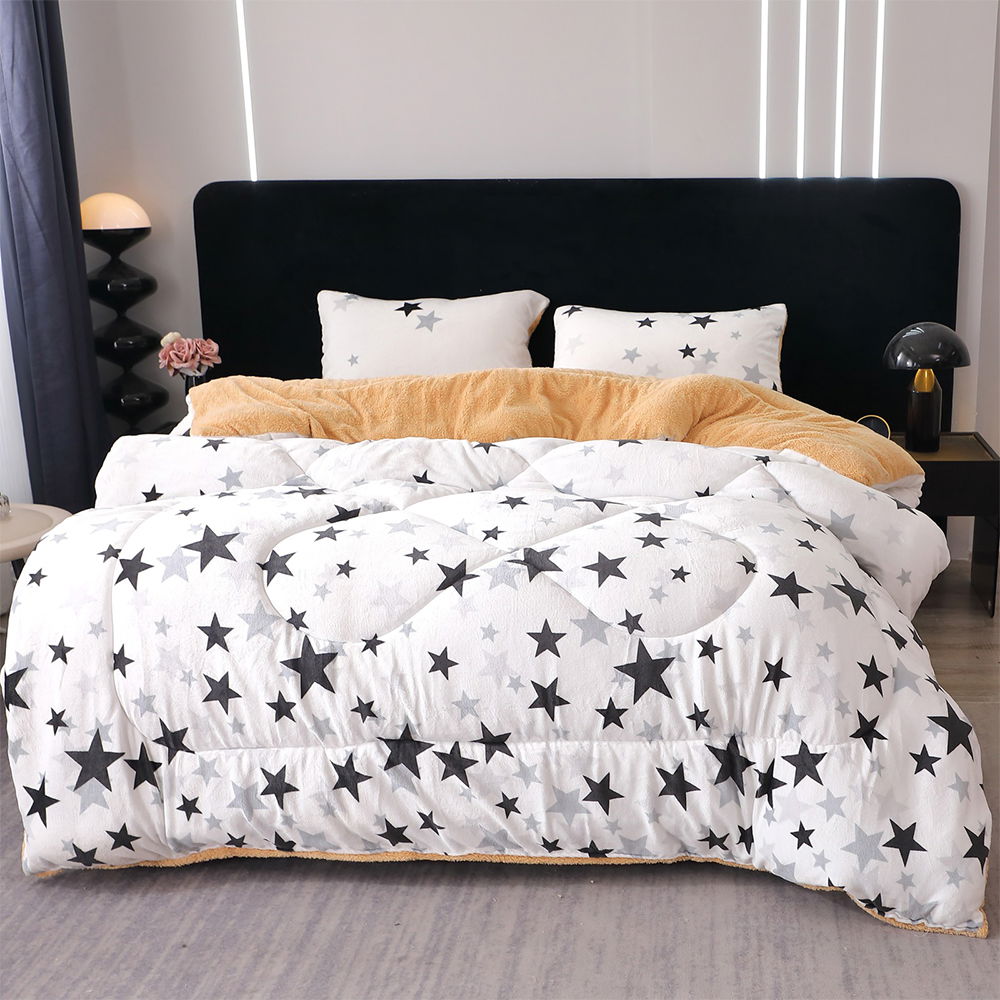 Pilota Cocolino cu Blanita Ploaie de Stele Alba - 200x230cm + 2 Fete de Perna 50x70cm - PM_O045