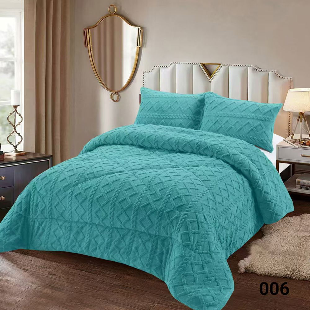 Pilota Tricotata cu Blanita Bej 200x230cm + 2 Fete de Perna 50x70cm - Turcoaz - PMG_O079