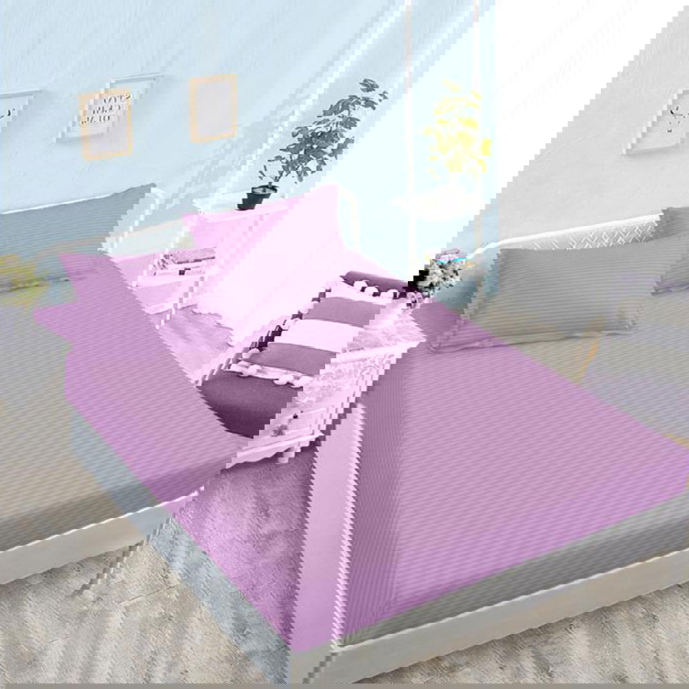 Cearceaf din Damasc Premium cu Elastic - 160/180x200 + 2 Fete Perna RESIGILAT - Lila - CEDM_K044RESIG