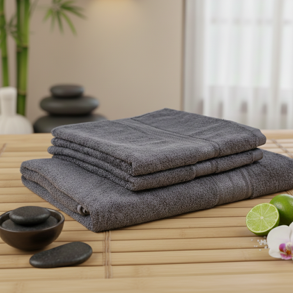 Set 3 Prosoape Gri Premium din Fibre de Bambus 100%, Super Absorbante - 2 de 50x90cm si 1 de 70x140 cm - 1xPRSBL002_2xPRSBM002