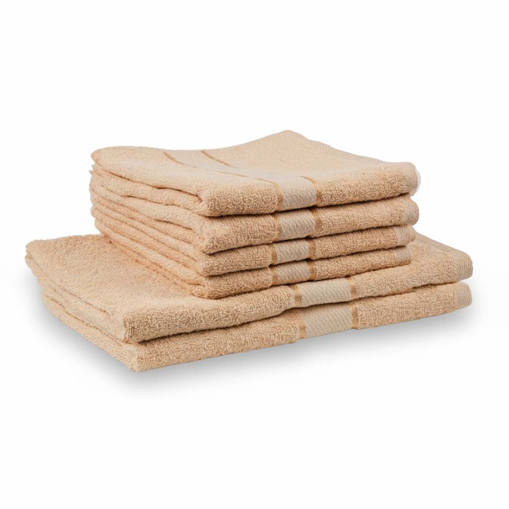 Set 6 Prosoape Crem din Bumbac 100% - 4 de 50x90cm si 2 de 70x130cm - 400g/mp - 4xPRSM003_2xPRSL003