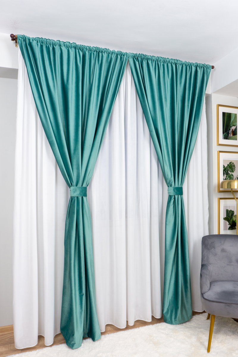 Set 2 Draperii din Catifea 100x245cm cu Rejansa - Verde Menta - CTFDA516_100x245_ATL_EMG