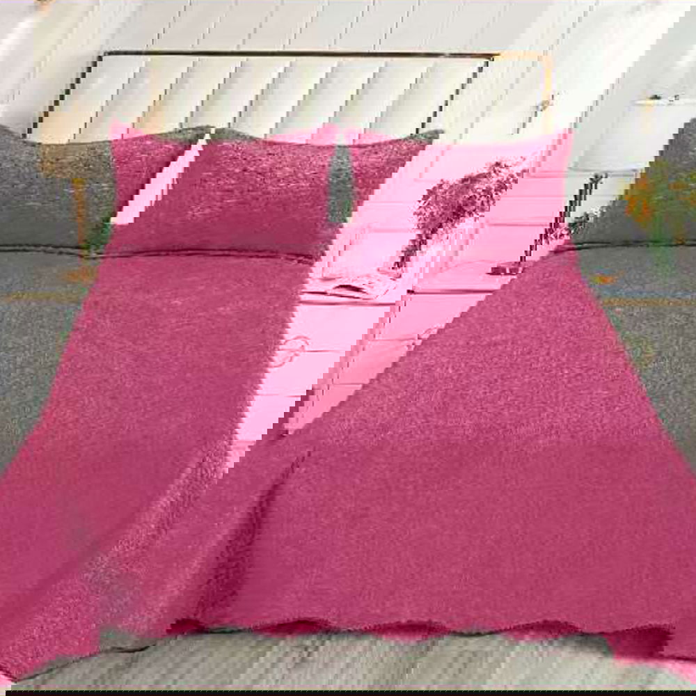 Set 3 Piese Cuvertura de Pat Uni Finet + 2 Fete de Perna 54x75 cm - Roz Inchis - CVF0049