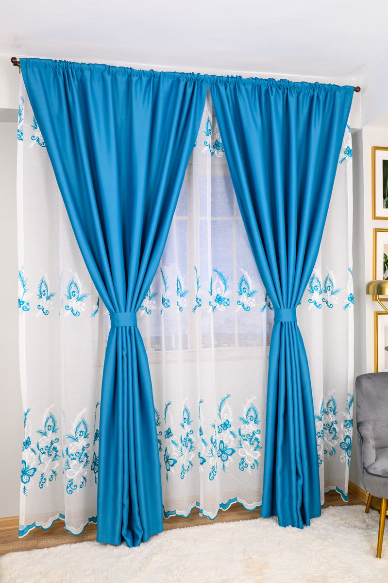 Set Agata - Perdea din In Raiul Fluturilor Turcoaz si Draperie Blackout Turcoaz Elegant
