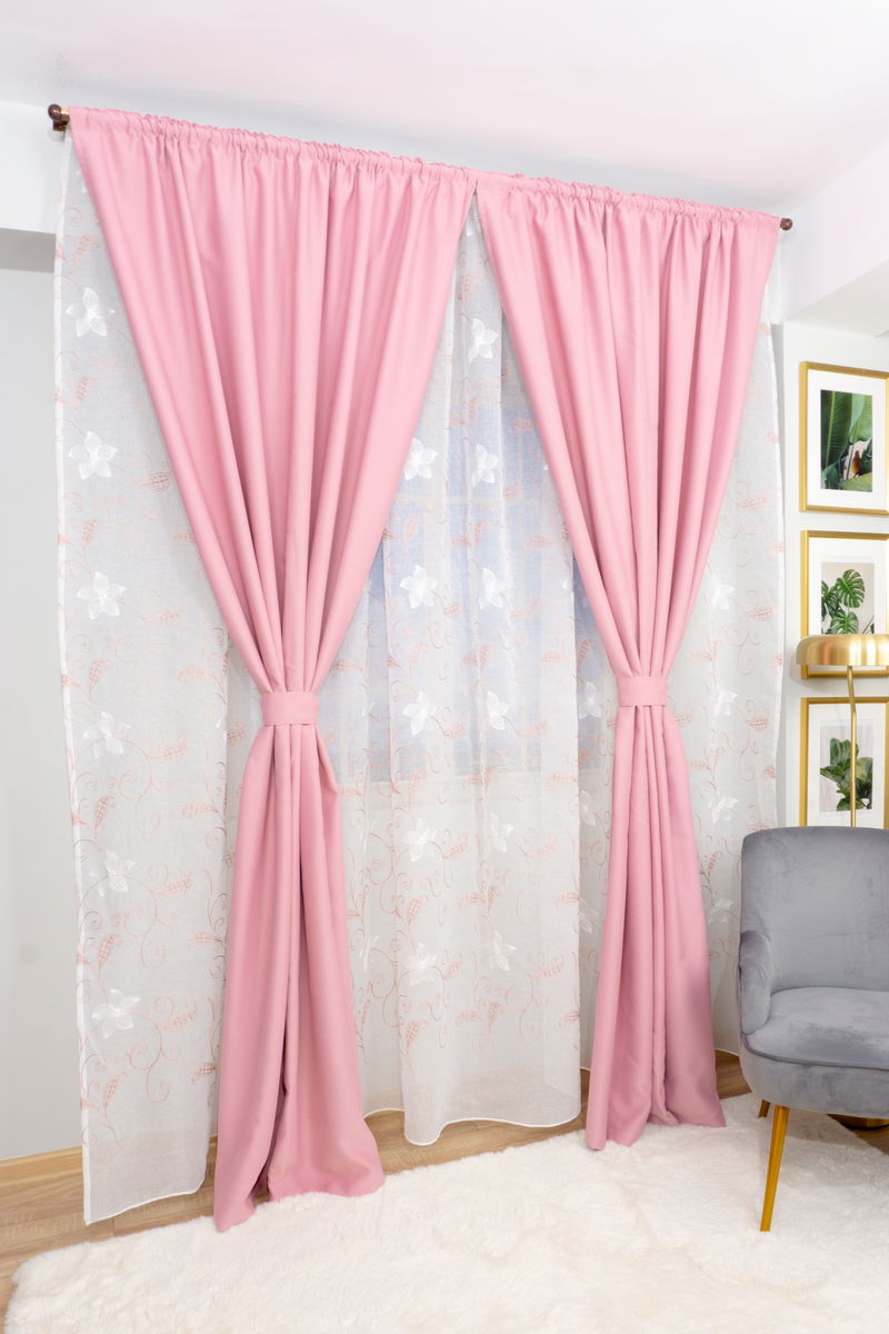 Set Amara - Perdea WallFlowers Roz - PERD092A_300x245_ATL si 2 Draperii Blackout Roz Drajeu - BOTD049_100X245_C3_21_ATL cu Rejansa Set_ATL