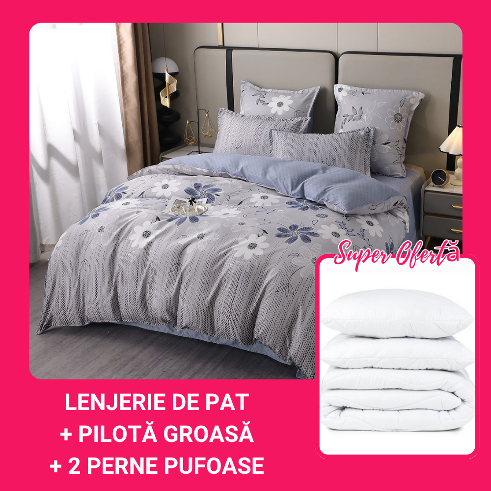 SET CADOU LENJERIE 6 PIESE + PILOTĂ + 2 PERNE 50x70 CM