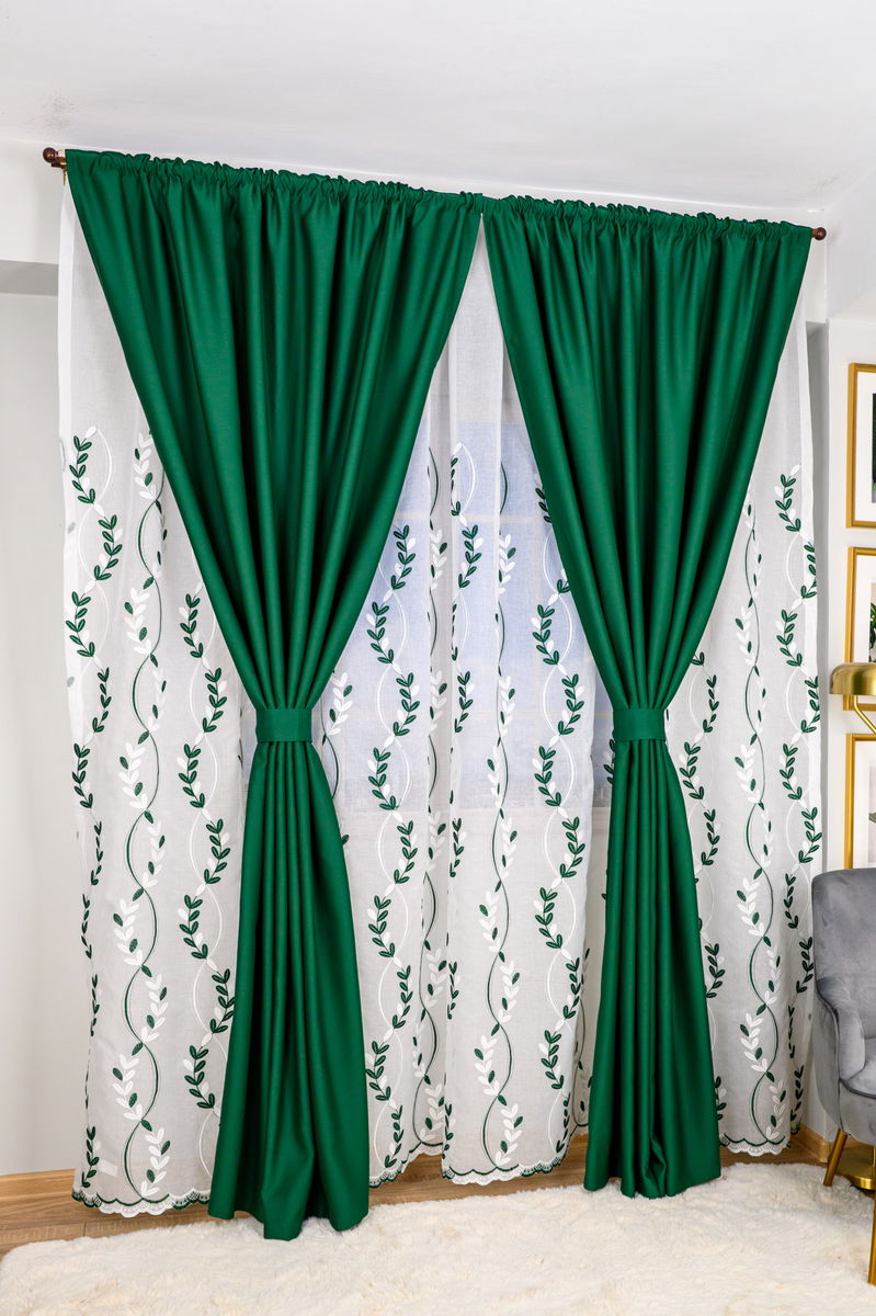 Set Dafina - Perdea din In Nio Verde si Draperie Blackout Verde Smarald