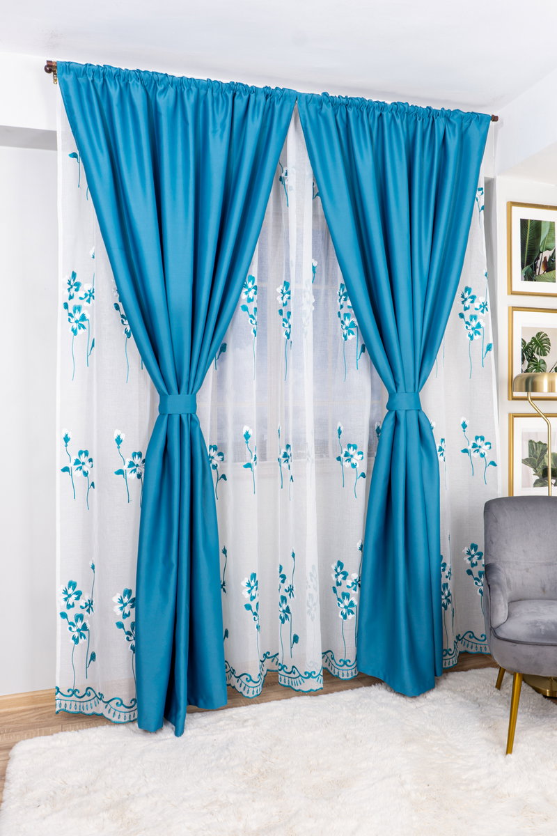 Set Liana - Perdea din In Dalia Turcoaz si Draperie Blackout Turcoaz Elegant
