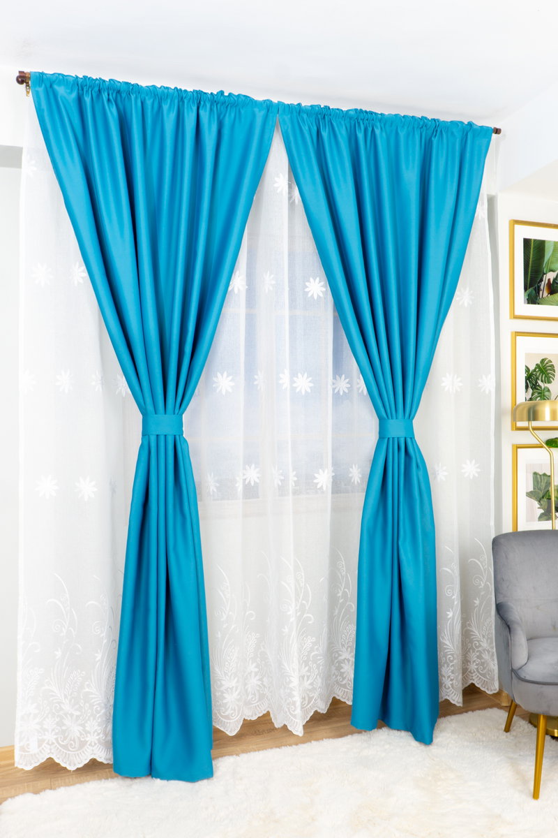 Set Lolita - Perdea din In Mira Alba si Draperie Blackout Turcoaz Elegant